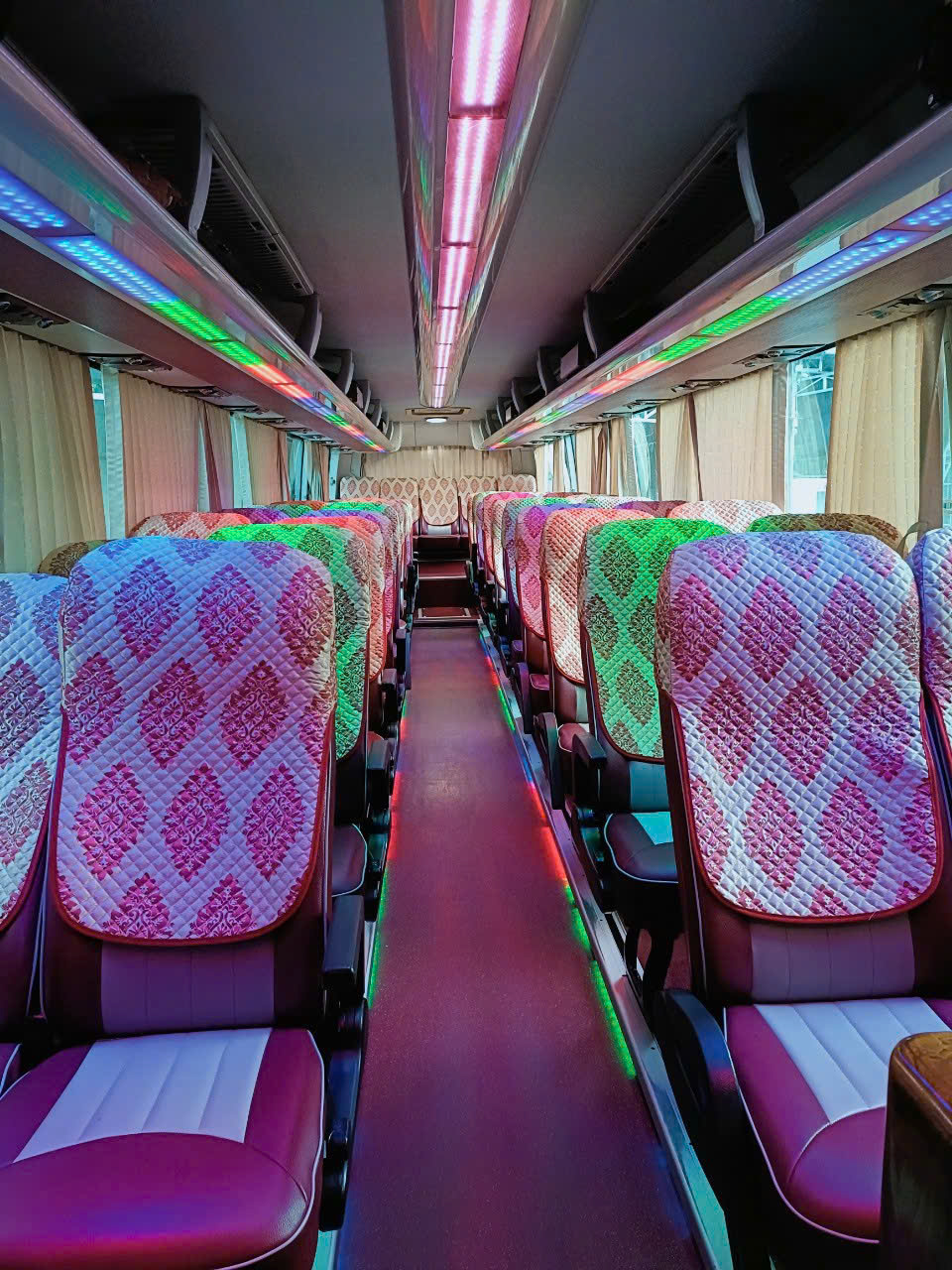 Khoang rộng rãi và thoáng mát: Xe được bố trí nhiều ghế, không gian đủ rộng cho hành khách nghỉ ngơi thoải mái mà không bị chật chội.